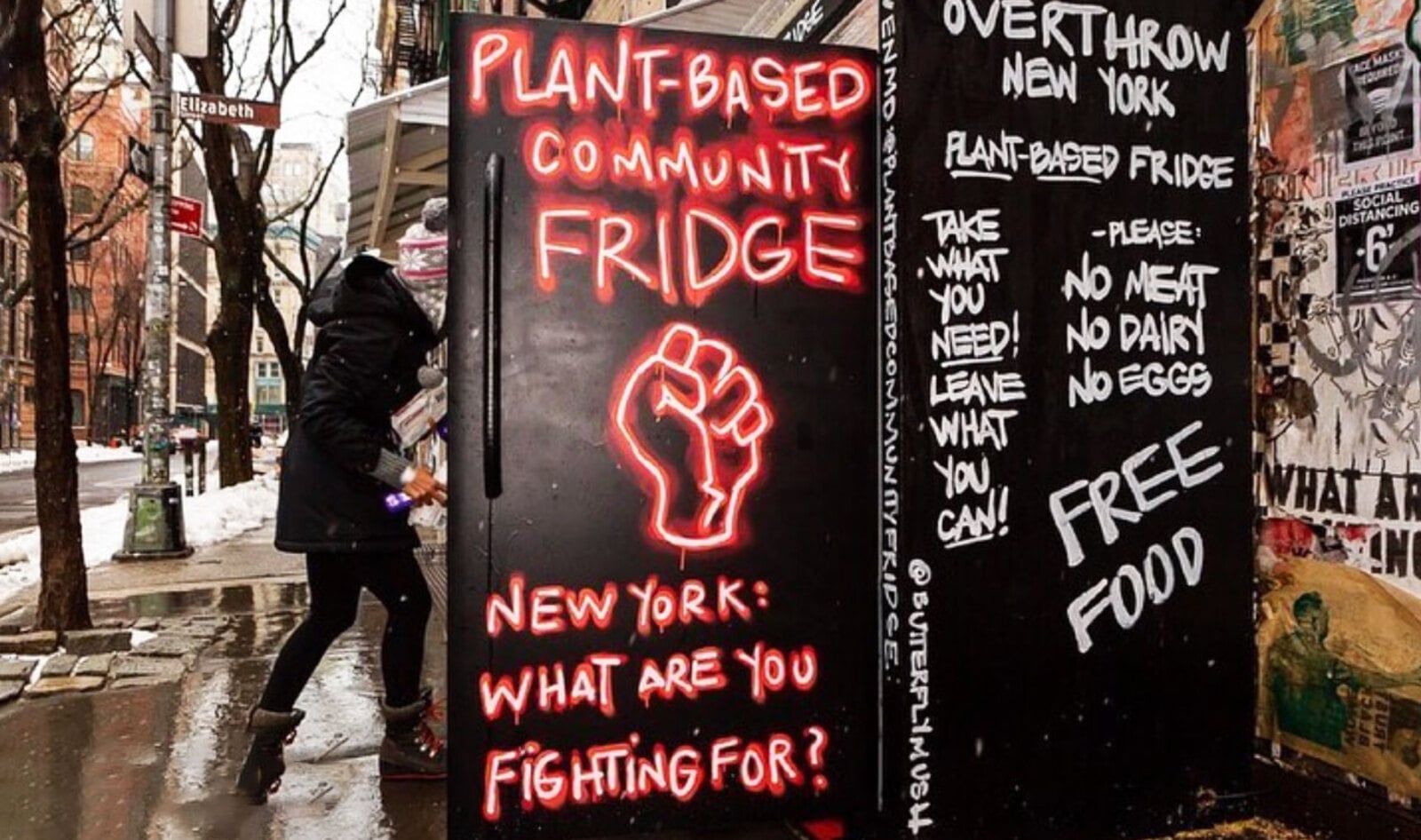 This month, New York City’s first vegan community fridge was erected amid the ongoing COVID-19 pandemic. A collaboration between food justice organization Chilis On Wheels and activist groups Overthrow New York, Artists Athletes Activists, Hip Hop Is Green, and Vegan Activist Alliance, the Overthrow Community Fridge is stocked with fresh produce; dry goods such as beans, legumes, rice, and pasta; plant-based canned goods; vegan-friendly clothing; toiletries; and educational vegan literature.
