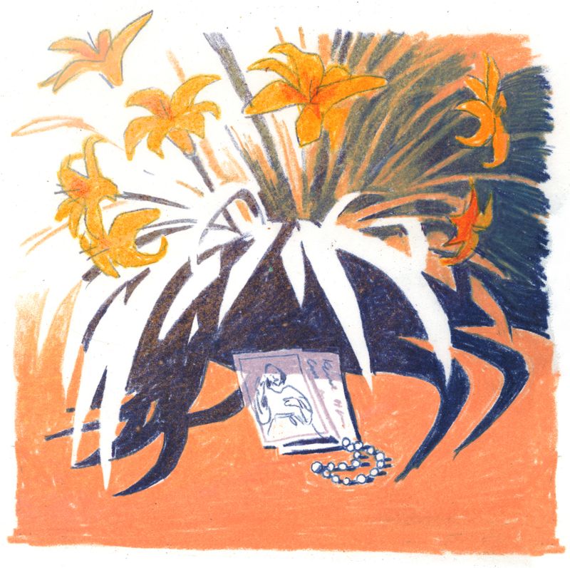 Mientras que los administradores del caso buscaban una cama para ECMO, la madre de Miguel regresó al estacionamiento del hospital para velar por su hijo. Esta vez, escondió una estampa de oración y un rosario por debajo de las hojas de unos lirios, para que protegieran a Miguel cuando ella no estuviera allí.