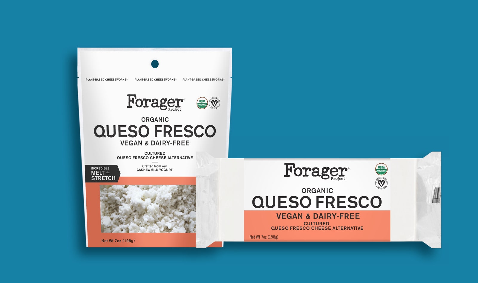 This spring, California-based brand Forager Project will launch Cheeseworks, its first line of organic vegan cheeses, at retailers nationwide. Available in two formats (shreds and chunks), the Cheeseworks line will feature four flavors: Mozzarella, Jack, Parmesan, and a unique-to-the-market Queso Fresco. Made from a base of Forager’s own organic cashew milk yogurt, the vegan cheeses are crafted without modified food starches and are made to mimic the meltability and stretch of their dairy-based counterparts. The Cheeseworks line will be available for a suggested retail price of $5.99 at retailers such as Fresh Thyme, Sprouts, Central Markets, Stop & Shop, and more.
