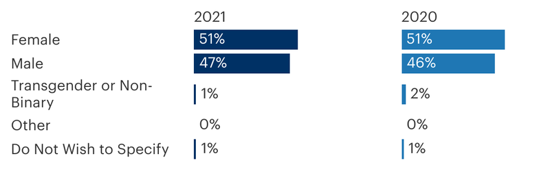 For the third year in a row, more women than men work at ProPublica. In editorial positions, women represented 51% of the staff.