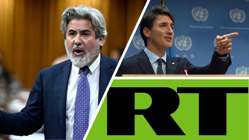 Pictured: Canadian Heritage Minister Pablo Rodriguez, Canadian Prime Minister Justin Trudeau, Russian state-funded media organization RT.