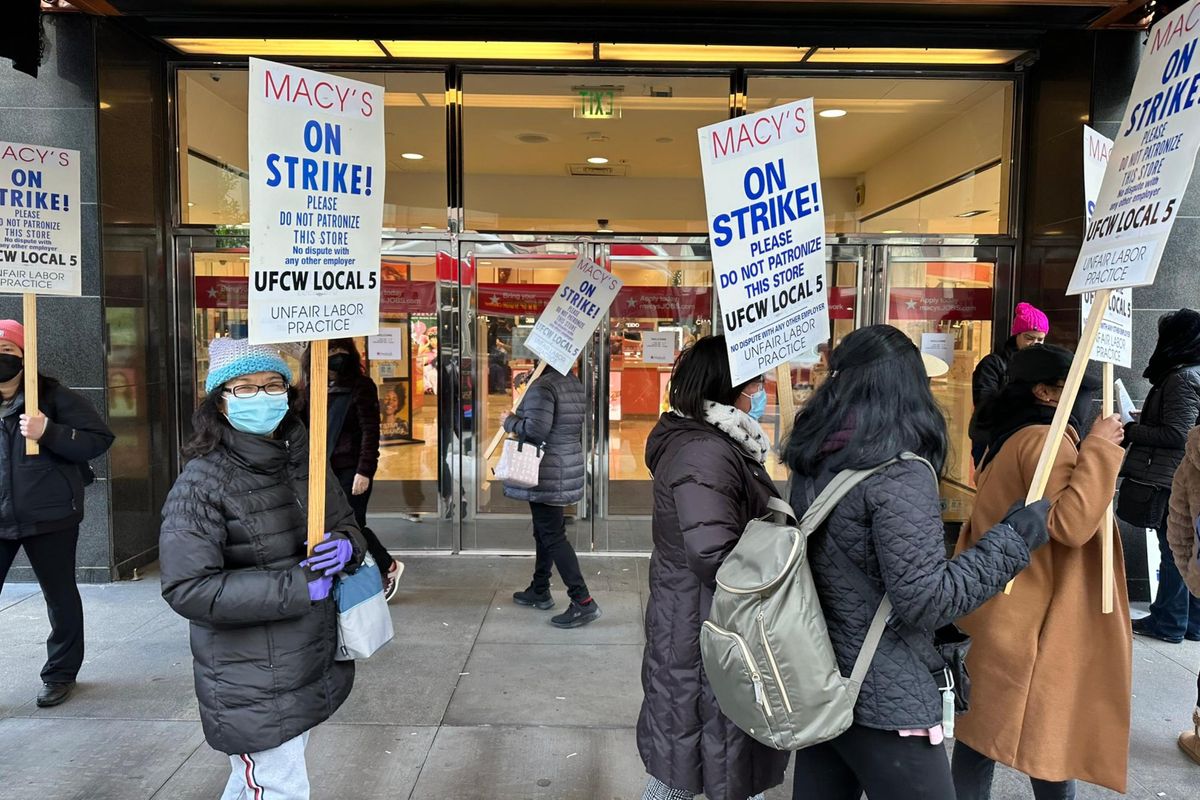 Hundreds of workers at Macy’s San Francisco flagship store walked off the job Friday amid the last-minute holiday shopping rush for a two-day strike demanding better pay, healthcare, and working conditions.