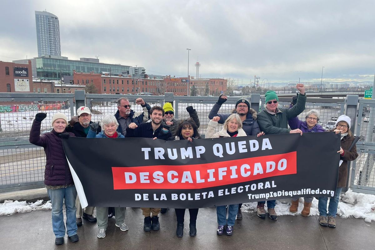 As part of the “Jan. 6th Justice: Our Freedoms, Our Votes” day of action on Friday, Mi Familia Vota held a rally in Denver demanding that Democratic Colorado Secretary of State Jenna Griswold use her power to keep Trump—who formally launched his current presidential campaign in November—off the ballot in 2024.