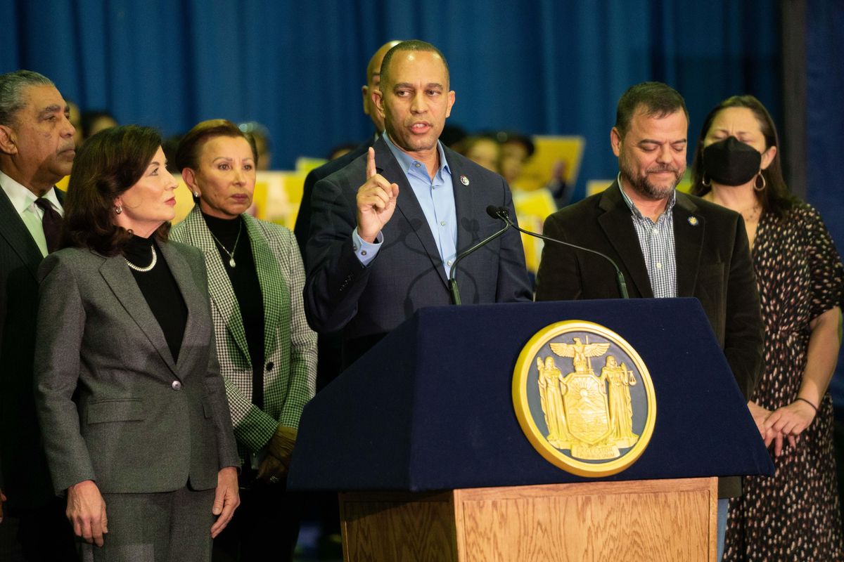 House Minority Leader Hakeem Jeffries joined New York Gov. Kathy Hochul and other state Democrats at a Bronx rally Saturday, just days ahead of what is sure to be a contentious confirmation hearing in which progressive lawmakers opposed to LaSalle’s appointment to lead the state Court of Appeals could be decided.