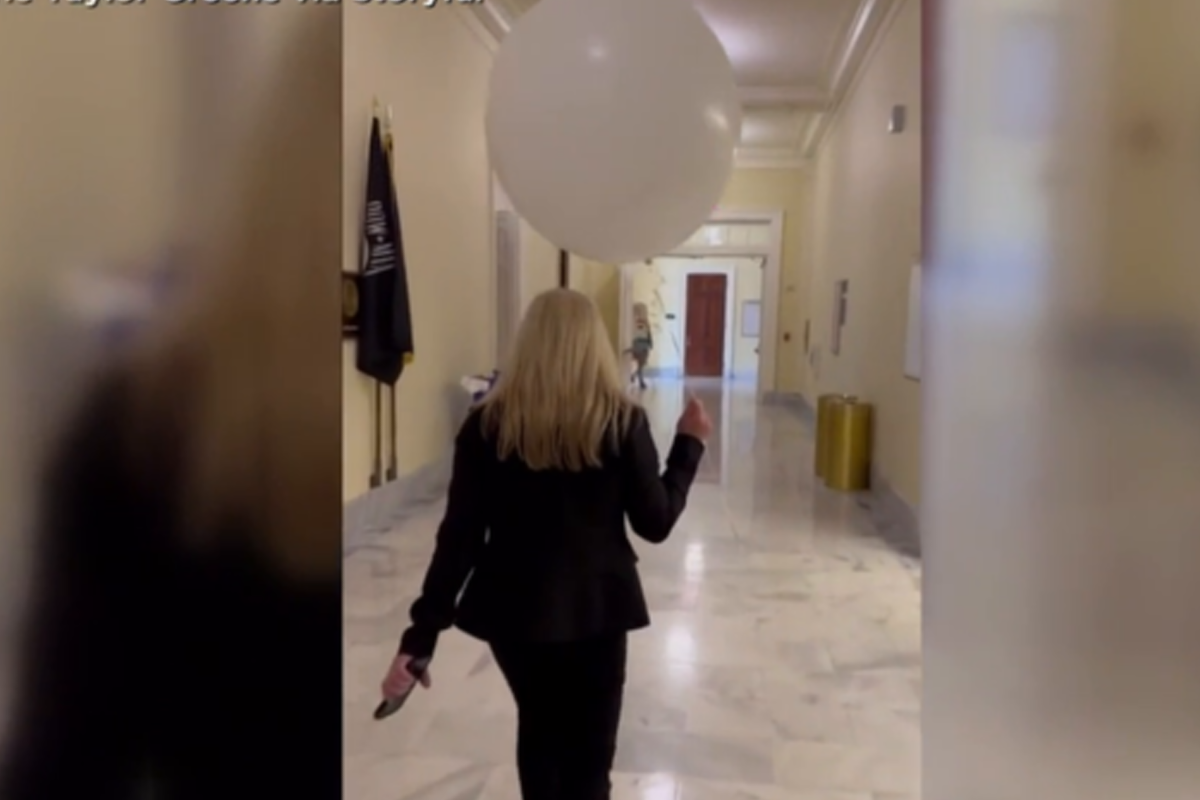 The clown show seemed to ramp up after Biden’s SOTU speech, when he slyly cornered a squawking GOP on Social Security/Medicare – “We’ve got unanimity!” – and proceeded to “mop the House floor with the howling, discombobulated remains of the Republican Party…They ran at him like a pack of lemmings (and) he politely directed them to the cliff.” Beforehand, trashy Klan Mom Marjorie Taylor Greene paraded around the Capitol with a white balloon – like the Chinese one, get it? – because she’s eight years old; during the speech, draped in a white fur Cruella de Vil coat – “sighting of the rare albino shitgibbon!” – the “biggest Karen to have ever Karened” brayed, leered, refused to STFU; after it, she squealed her own “dumb-as-an-illiterate platypus” rebuttal – liar, China, weak, doesn’t know anything: “Hard to say the State of the Union is ‘strong’ when our commander-in-chief lets a Chinese spy balloon fly across our entire country before doing anything about it.” Then again, “Hard to say the state of the union is strong when lawmakers are stomping around in obstructionist clown shoes.” Trump also gave a brief, bitter rebuttal on Newsmax: “Millions and millions of illegal aliens” have “stormed” across the border, “savage killers and rapists,” “war on free speech,” “indoctrinate and mutilate our children,” “brink of World War lll,” “the most corrupt president in American history.” (Biden, not him.) Yada, yada.