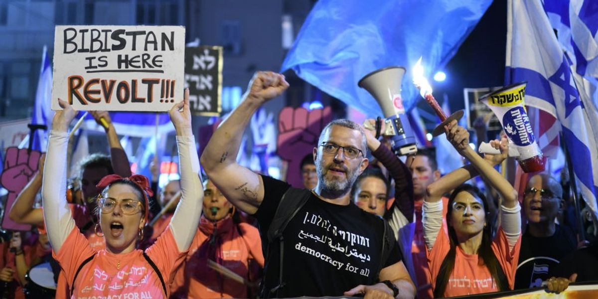 “There’s a great danger that Israel will turn into a dictatorship,” Ophir Kubitsky, a 68-year-old high school teacher at the demonstration, told Reuters. “We came here to demonstrate over and over again until we win.”