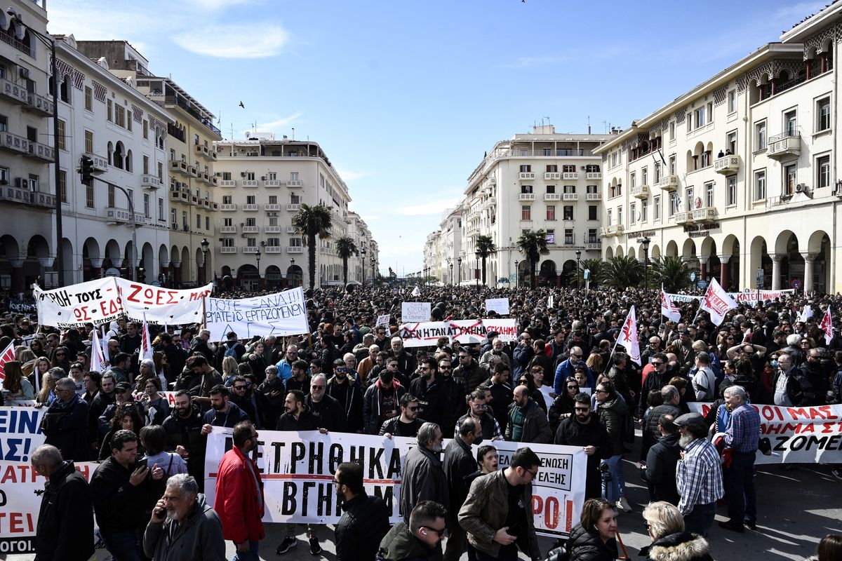 Another 20,000-plus people rallied in Thessaloniki, Greece’s second-largest city. Meanwhile, near the scene of the train collision in Larrisa, protesters declared, “No to profits over our lives!”