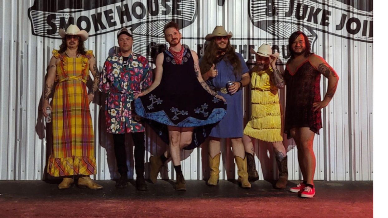 By way of defiant response, enter the Texas-based, six-piece, manly-man Vandoliers – “Socially punk. Fiscally country” – who in a “small act” of solidarity performed their set at a Maryville, Tenn. smokehouse, juke joint and Harley shop last week in dresses, and generous beards and tattoos be damned. Recently returned from the Outlaw Country Cruise and now on tour, they hit the stage the same day Lee signed the bill to Shania Twain’s “I Feel Like a Woman!” and launched into a set-list that included, “Don’t Tell Me What To Do.” A few bigots left, but “tons of old timers and alpha bros (came up) saying, ‘Man, that was fun.’” “Friends and fans in the LGBTQ+ community (are) a big part of my heart,” said singer Joshua Fleming. “(This was to say) we see you, we stand with you, and we’ll fight alongside you.” Still, he acknowledged, “It was a terrible drag show – the drag community is much better than us.” Afterwards, they auctioned off all six dresses, raising $2,277 for Knox Pride and the Tennessee Equality Project. Online, their fans cheered: “This is the original definition of outlaw,” “Y’all are the best,” “This…is…everything.” The Liberal Redneck also did a drag show fundraiser, in high school in “my beloved Tennessee…No, I did not win. My most redneck-ass buddy won by totally slutting it up.” Today, he slams his state for “throwing the funnest people you know in jail for dressing like Dolly Parton.” “These people’s bigotry is ancient,” he says. “It’s not the practice they hate, it’s the person. A guy in a dress must be kidding, a gay in a dress must be stopped. But we know what they’re doing – they’re trying to legislate these people out of existence.”