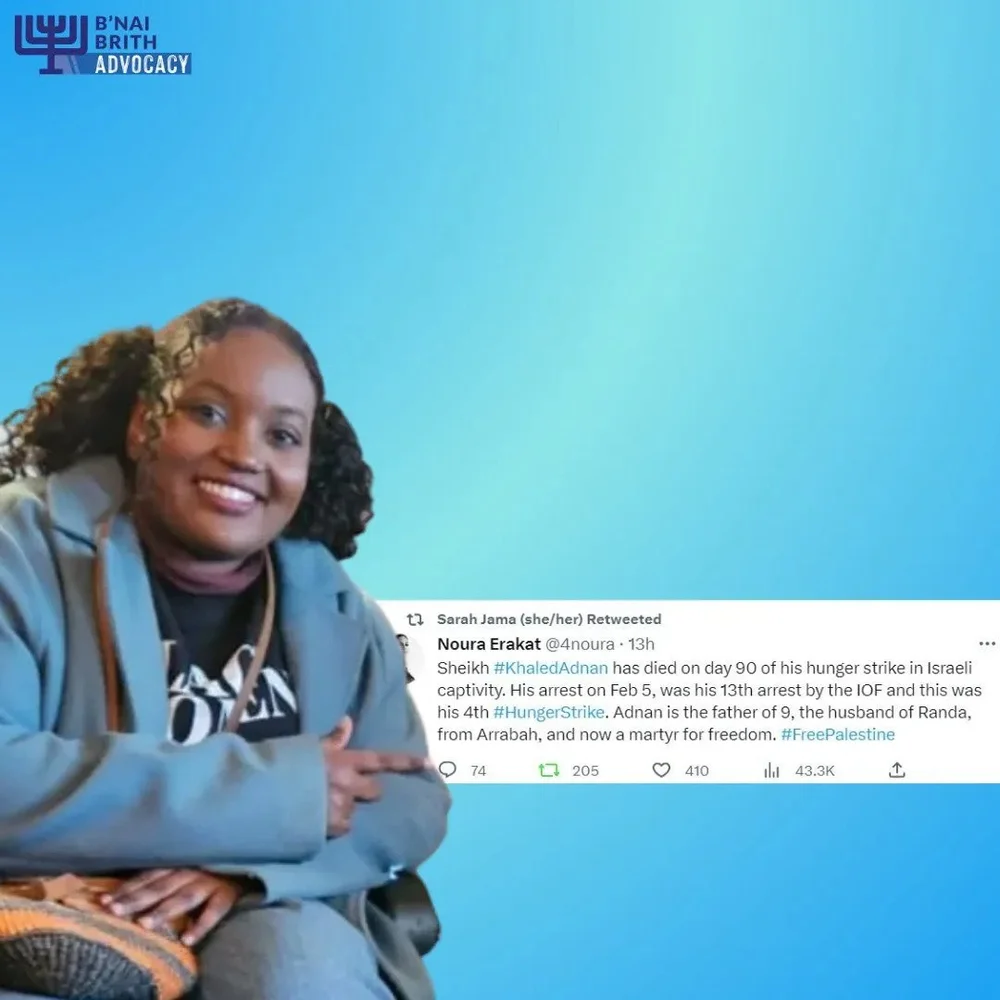 Last night newly elected Ontario NDP MPP Sarah Jama re-tweeted Palestinian academic Noura Erakat’s statement on the death of Palestinian prisoner Khaled Adnan. Erakat tweeted, “Sheikh Khaled Adnan has died on day 90 of his hunger strike in Israeli captivity. His arrest on Feb 5, was his 13th arrest by the IOF [Israel Occupation Force] and this was his 4th Hunger Strike. Adnan is the father of 9, the husband of Randa, from Arrabah, and now a martyr for freedom. Free Palestine.”