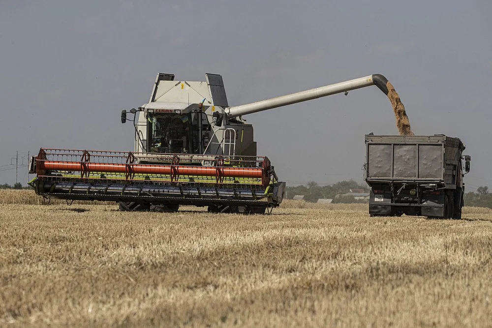 Grain being harvested in Odessa, Ukraine. Image credit: CGTN.