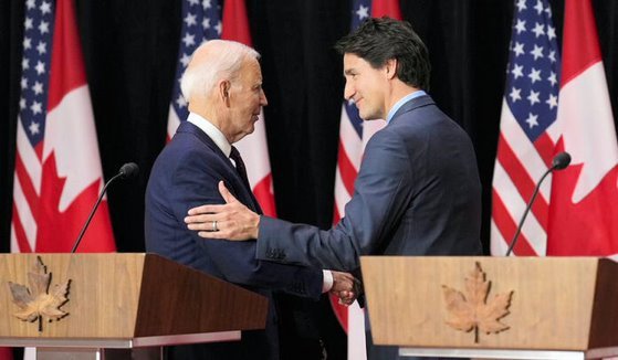 Canadian PM Justin Trudeau and US President Joe Biden in March 2022. Image credit: Google/AP.