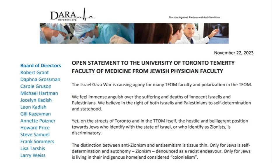 An online collective, Combat Online Harassment (CoHA), says that 18 individuals who signed on to an open letter in defense of Zionism from members University of Toronto’s Temerty Faculty of Medicine, have been found to spread anti-Palestinian, anti-Arab and Islamophobic hate.