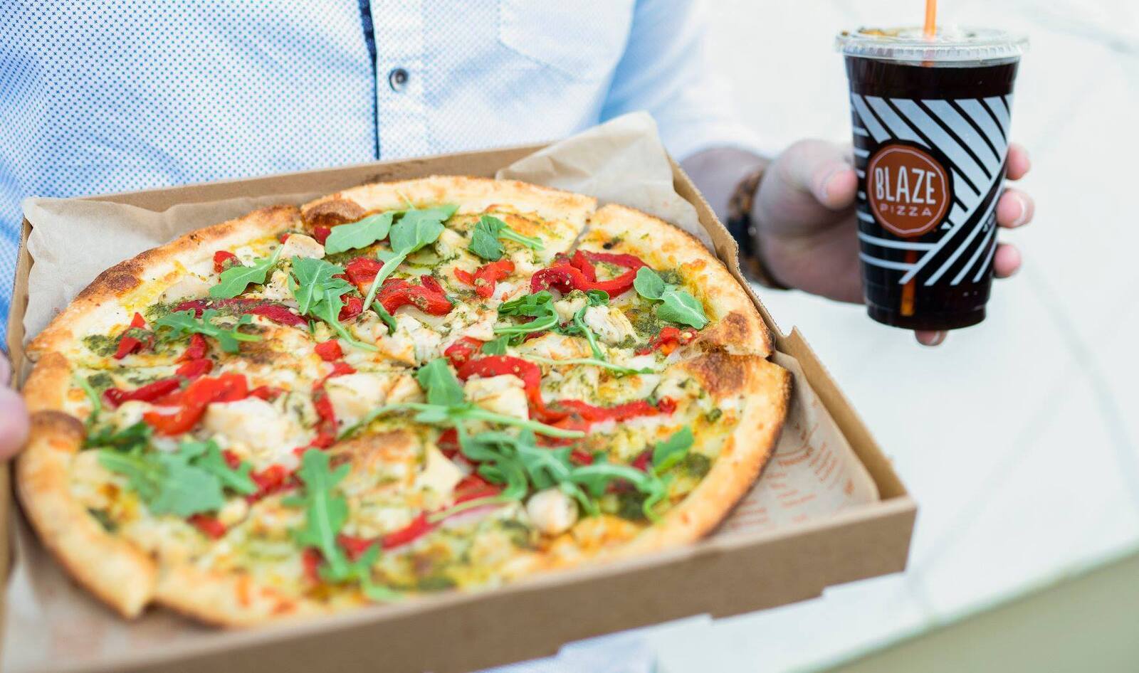 Of the pizza chains that do delivery, Blaze Pizza is one of the most vegan-friendly. At this LeBron James-backed restaurant, the Classic, High-Rise, and gluten-free crust options are all vegan. Then, you can top it with dairy-free cheese, plant-based chorizo, and all of the veggies.