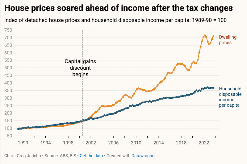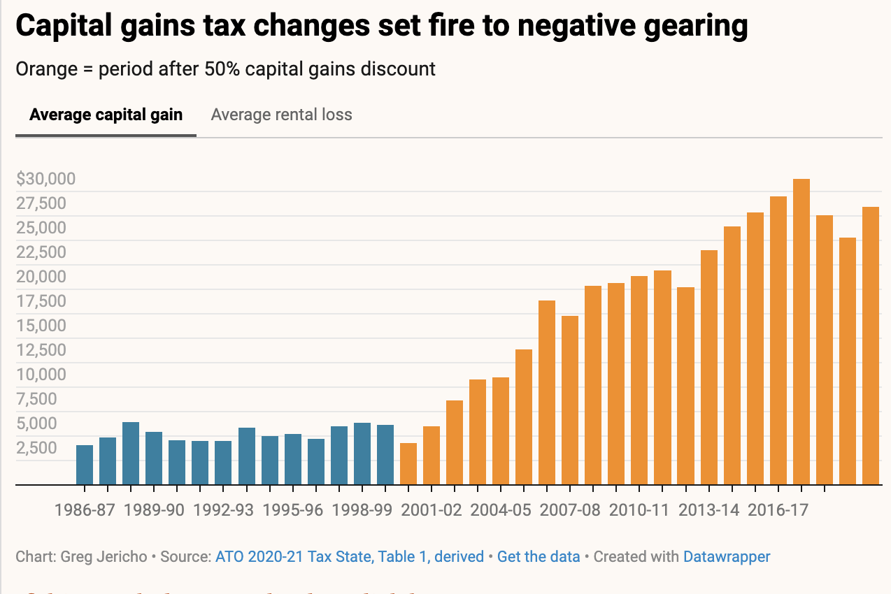 Australia real estateAnd as Greg Jericho points out in this chart above, the CGT changes “set fire” to negative gearing. So it is not as though our elected officials have no measures to address the crisis. They are staring us all in the face.