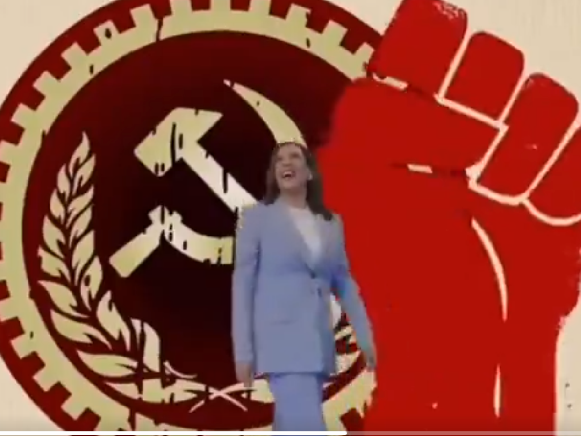 We need no further proof than the latest, lowest insanity being sent out into the world by an ever-uglier, wackier Trump: A video parody of Alanis Morisette’s song Ironic, from Nazi pro-trump “Dilly Meme Team,” starring Kamala Harris and titled Moronic. LOL. Get it?!? It features a swirling montage of…something. There are images of black guys in jail, Hunter Biden, Hunter and Joe, with Obama in charge. They are all awash in scary red fists, a hammer and sickle, a statue of Stalin, and marching/dancing Kamala is just like him, but more of a ho. They are accompanied by lyrics: “It’s like jail/full of black inmates/no free ride/she will incarcerate/and she never thought/just giggles….Isn’t it moronic? Don’t you think/ a little too moronic?” Yes.
