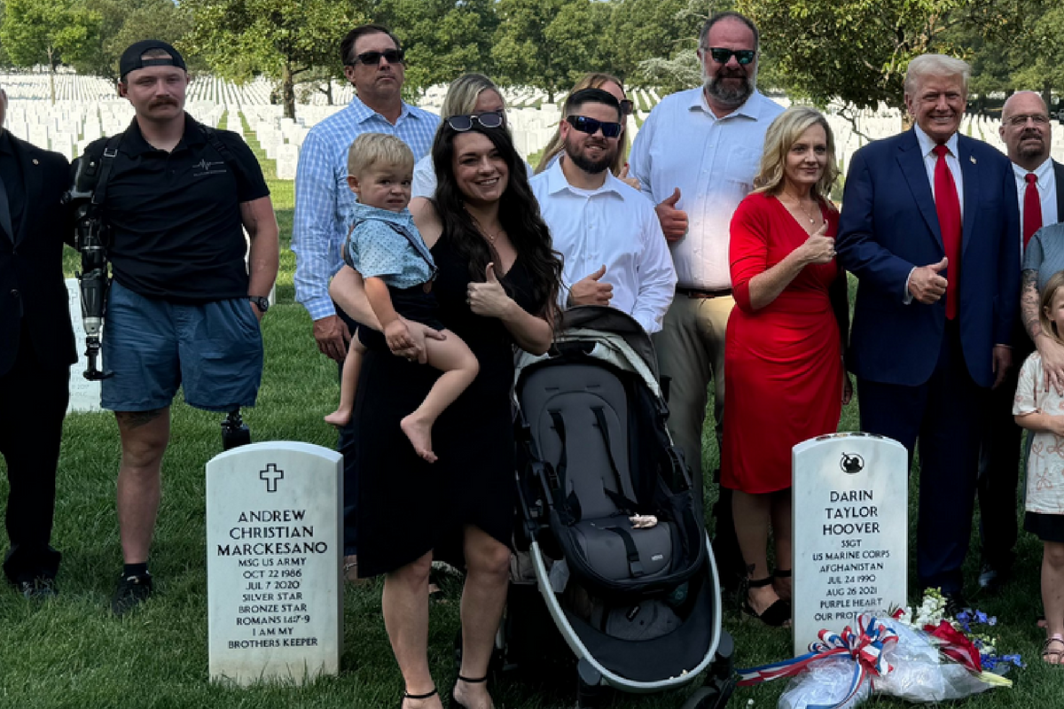 Still, it kept getting worse. There were emails confirming the campaign was told about the rules, but barged in regardless. Federal law § 553.32 was cited: “Memorial services and ceremonies at Army National Military Cemeteries will not include partisan political activities.” The “ripples of outrage” swiftly spread to veterans and their families, incensed at a tawdry effort to “borrow their valor.” A pained, plaintive protest came from the family of Green Beret Master Sgt. Andrew Marckesano, a father of three who earned Silver and Bronze Stars in eight combat tours before dying by suicide in 2020 after enduring PTSD; his grave, clearly visible in the video, is adjacent to that of Staff Sgt. Darin Hoover, killed in the Kabul bombing, whose family had invited Trump. “Staffers did not adhere to the rules,” wrote Marckesano’s sister of their trespass on “this sacred site.” “Understand that these were real people who sacrificed for our freedom,” she wrote, “and that they are honored and respected accordingly.”