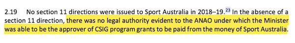 If she had acted within the statutory framework of the Australian Sports Commission Act she would have had to first consult with the Commission’s chief executive and then publish and table her directions in Parliament. She didn’t want that sort of scrutiny for what were very obviously partisan political decisions.