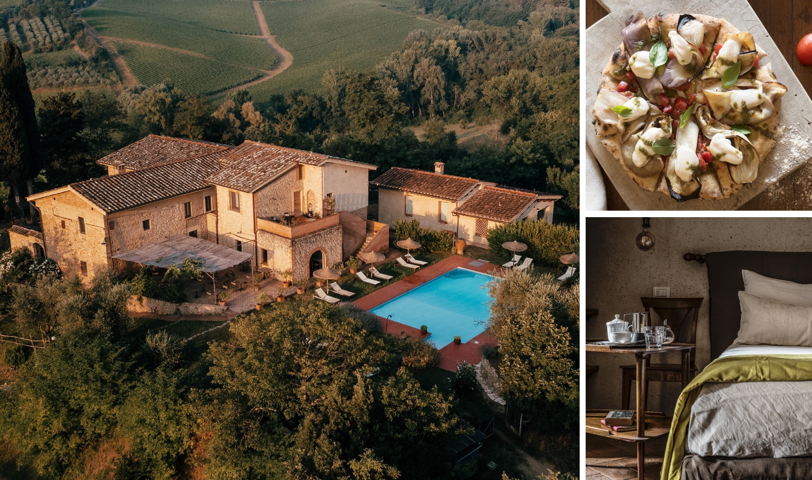 And, of course, there’s an outstanding vegan restaurant—the family’s signature. At I Pini’s farm restaurant, the menu is rooted in seasonality and organic, hyper-local ingredients, many of them sourced directly from the hotel’s own regenerative gardens. The pièce de résistance? A freshly prepared seed-to-table meal on the terrace, with glimmering medieval San Gimignano shimmering in the distance.