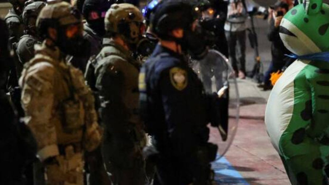And, really, when you look at the Portland protests, it’s understandable. While a handful of people have peaceably gathered, on the legal side of a blue line, outside the largely tranquil ICE facility since June, their forces often included the terrorist, blow-up Portland Frog, who In one recent tussle was pepper-sprayed in their vent by infuriated ICE agents. Now, the stalwart Frog is back; asked about the assault in an interview, they cheerfully dismissed it with, “I kinda coughed a bit, but that was about it…Just a little pepper – I’ve tasted spicier.” At that point, a phalanx of ICE thugs emerged together and pointlessly fired off clouds of teargas toward the handful of protesters; the Frog danced and sang, “You put your left foot in…” As the troops carefully, ridiculously backed away, the protesters yelled, “Fucking losers” and “We’re supposed to love each other.” The Frog kept dancing. He also shimmied. Truly a burning hellhole.
