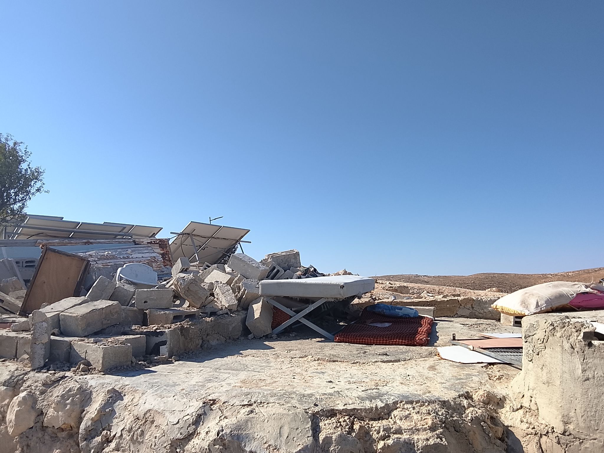 Khalet Ad Dabaʿ, with a population of about 90, has been the home of Palestinians for centuries; one of them, 89 years old, was born before the Zionist Entity ever became a terrible reality. What was once homes, agricultural land, wells and walls for sheep; mobile bathrooms and cabling, footpaths and kitchens and water tanks has been ground to nothing; all that is left is rubble, dirt and scraps of metal, undiscernable, crumpled objects, beds surrounded by no walls, demolished by Israeli bulldozers, surrounded by armed men and women, and the protective arms of the West. It is the same story repeated with hundreds of villages around Palestine inflicted by Israeli violence; this is everyday life under occupation.