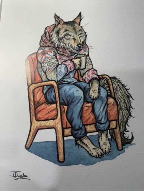 Cozy Wolf by Jonathan Guerdrum. (Used with permission of the artist.)