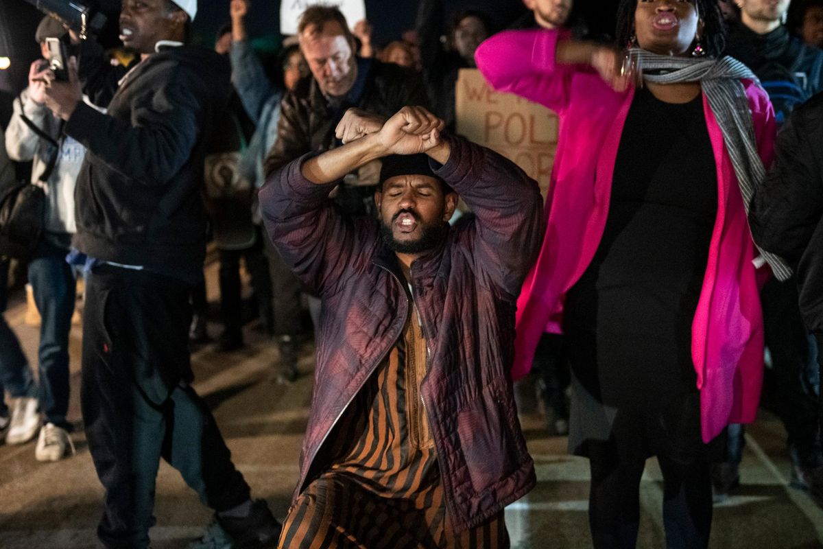 Perhaps blighted by a discredited “warrior mindset” that sees any civilian as a potentially deadly enemy – or perhaps because they’re sociopaths – a growing pack of cops swiftly, brutally ramp up the violence against one defenseless, 145-pound man already on the ground. For 13 minutes, one analysis found, they unleash a torrent of 71 “confusing, conflicting and sometimes impossible to obey” commands while hurling blows and curses. Over and over, they scream “Get on the fucking ground” when he is and “Give us your fucking hands” when they’re holding onto them; they kick him in the ribs and head, punch him in the face, pound him with batons, pepper-spray his eyes, prop up his limp body, Mafia-goon style, to punch him in the face again – though police training teaches that’s the worst and most lethal way to subdue someone – and yell “I’m gonna tase your ass,” “I’m gonna baton the fuck out of you,” and when he tries to flee, “I hope they stomp his ass.”